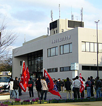 さらに3月24日には、小野市役所の前で抗議集会を開き市長を誹謗中傷するビラを配ってまわった。小野市の職員組合が「(小野市では)労使対等の立場をお互いに確認しており、賃金カットなどの不当な勤務条件などの措置は受けておりません」としたうえで、「今回の抗議行動は、絶対に避けてくださいますよう、強くお願い申し上げます」と中止を要請するFAXを自治労と県内の市町村の職員組合に送っていたにもかかわらずだ。