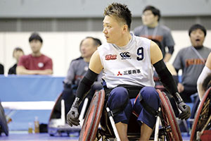 車いすラグビーの試合に臨む今井友明選手