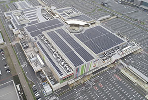 屋上一面に太陽光パネルを設置したアリオ市原。年間発電量は、施設全体の電力使用量の約25%に相当する。