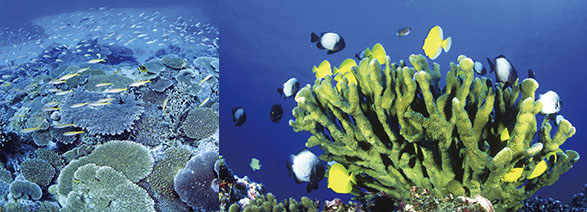 「サンゴ礁は漁場としての機能が重要で、多様な魚類がサンゴ海域に生息します」