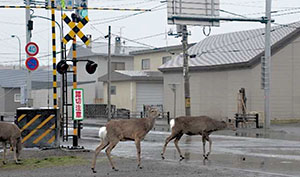 市街地に出没するシカ(国立研究開発法人森林研究・整備機構森林総合研究所北海道支所)