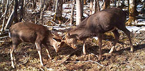 我々は1.5歳で成熟し、2歳からほぼ毎年出産する。アメリカにいるオジロジカと違い、めったに双子はできない。寿命が尽きるまで出産は続く。知床岬にいる仲間の数を数えたところ、年率2割で増え続けたという。子供の生存率は少し低いが、牝(め)鹿の自然死亡率は1割以下で、0に近い。エゾシカの雄は150キログラムにもなる大型獣だが、早熟で、年率2割増加なら4年で倍増、13年で10倍に増える。