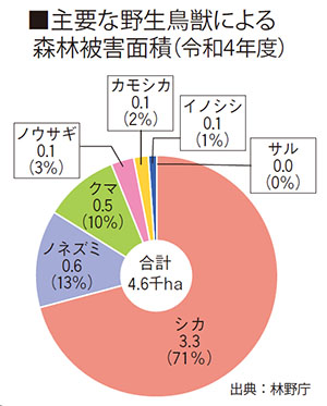 吾輩は鹿である。前号の熊と違い、我々は草食獣で、人を食うことはない。だが、農林業被害額は1位の我々と2位の猪で全鳥獣の65%を占めており、鹿害は今も年々増え続けている。我々は先史時代から狩猟の獲物とされ、農地では人と我々の知恵比べだった。