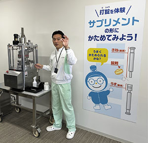 実は三島工場は一般の人も見学することができる。しかも見学コースは今年7月24日にリニューアルされたばかりだ。三島工場オリジナルキャラクターの「タンクリーンくん」が随所にいて、医薬品製造レベルのクリーンな環境でサプリメントを製造していることをやさしく説明する。ファンケルのサプリメントの特徴である「体内効率設計」を視覚的に体験できる実験コーナーも新設された。