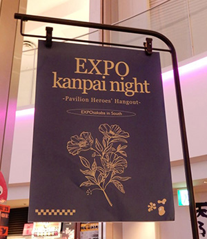 具体的な動きも起きている。5月30日夜、大阪・心斎橋のPARCO地下2階の共用スペースには「パビリオン・ヒーローズ・ハングアウト(パビリオンの英雄たちのたまり場)」という幟が掲げられていた。大阪・関西万博に出展している各国パビリオンのスタッフたちをねぎらうための「EXPO酒場」会場である。