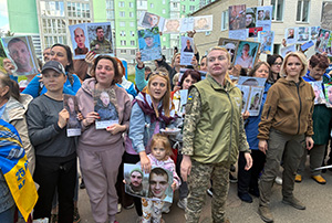 群衆の中に父親の写真を手にする少女の姿が目に入った。母親のアリョナによると、4歳の娘キラの父親ヴラディスラヴは激戦地である東部ポクロウシクの前線で24年11月に消息を絶った。